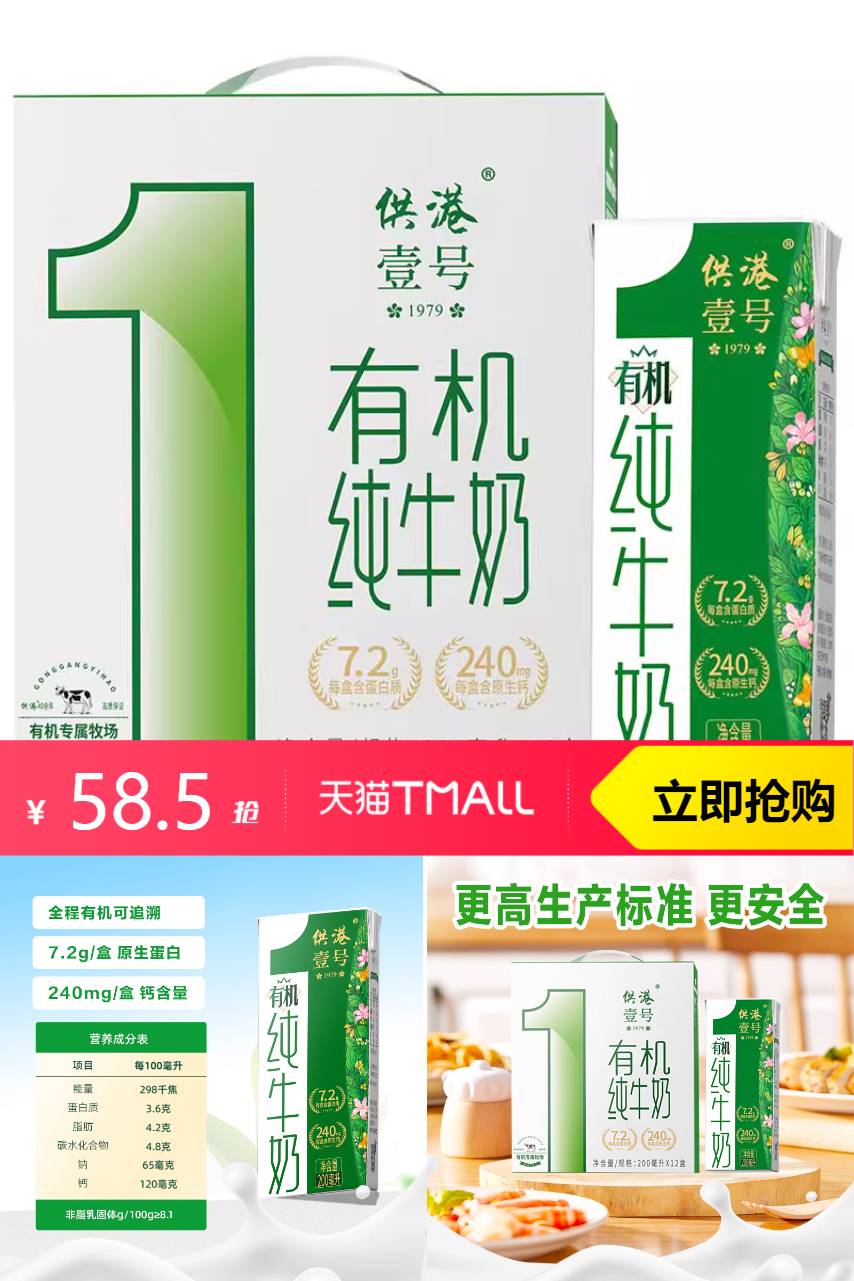 【叠加淘金币5.7元+消费券9折+价到礼金4.09元+=43.58元。合计单瓶1.8元】供港壹号有机纯牛奶,全程有机认证,新鲜日期,优选荷斯坦奶牛,3.6g优质蛋白,120mg钙含量,42年大牌子,家人喝着放心!