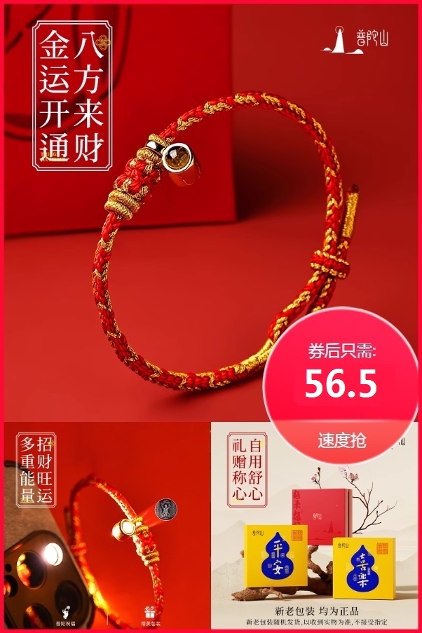 来自普陀山的祝福!普陀山八大守护神手绳,来自普陀山的礼物!手工精编,“吉”绳手链!微雕投影祝福吊坠,寓意平安健康,可调节尾扣,寓意好运相伴