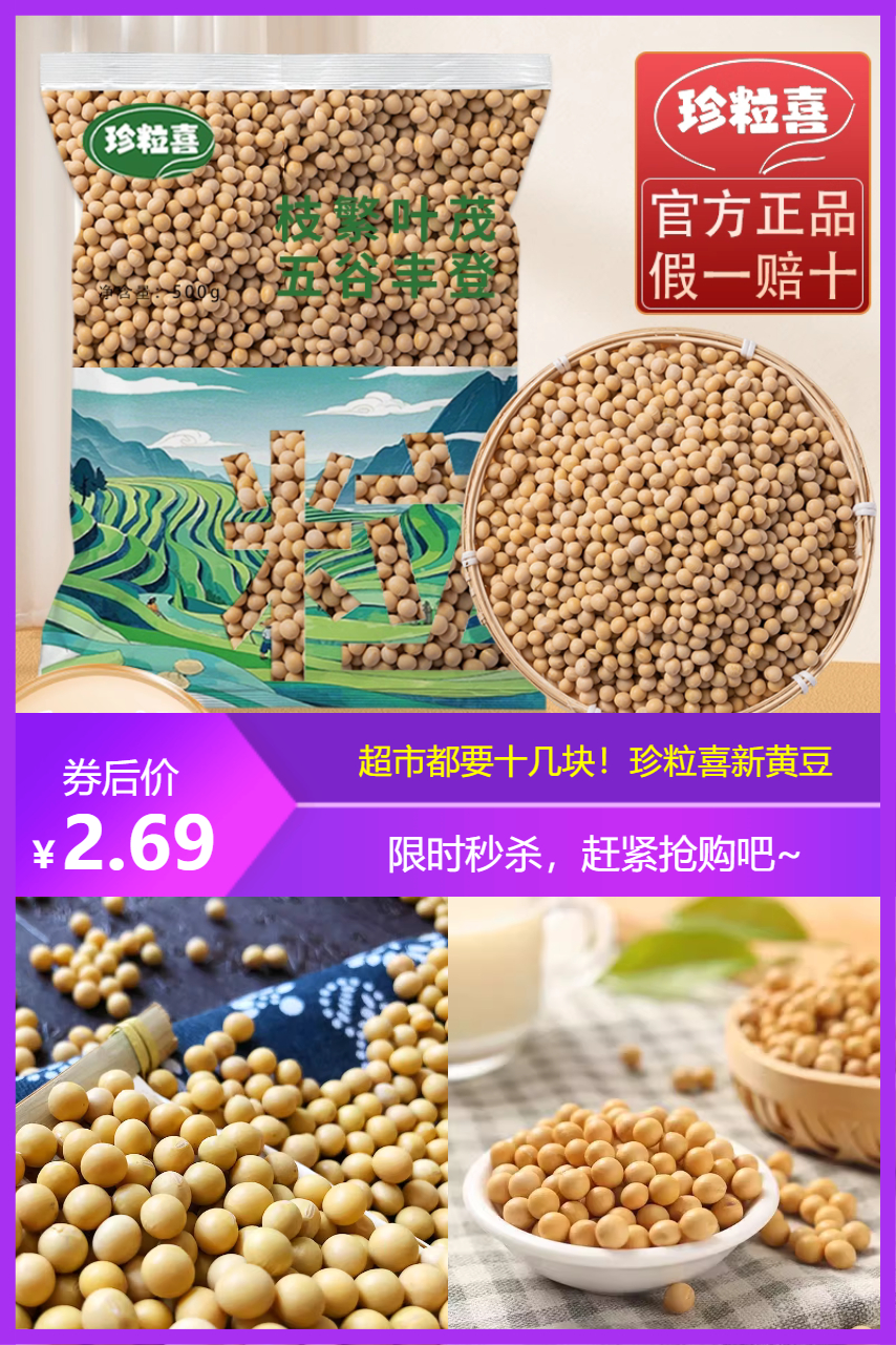 精选饱满黄豆,颗颗富含优质蛋白与膳食纤维。打豆浆浓醇丝滑,煮黄豆软糯香甜,煮粥煲汤皆百搭,家常营养好物!