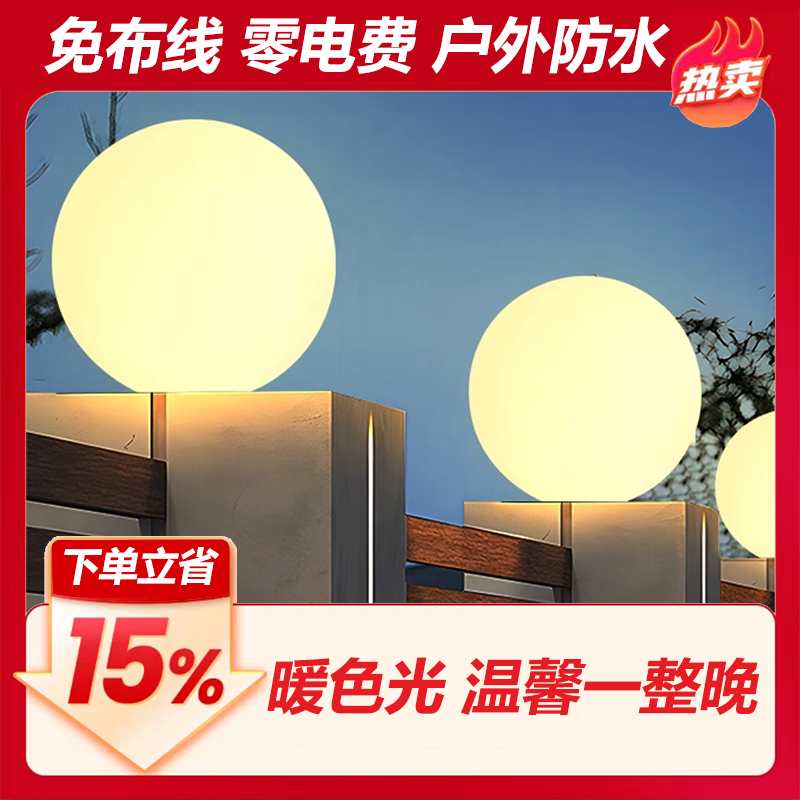 【店铺新客立减7元,限时9.6折,淘金币可抵2.98元起,到手91.78元】太阳能暖色光柱头灯LED灯防水户外家用大,超赞~