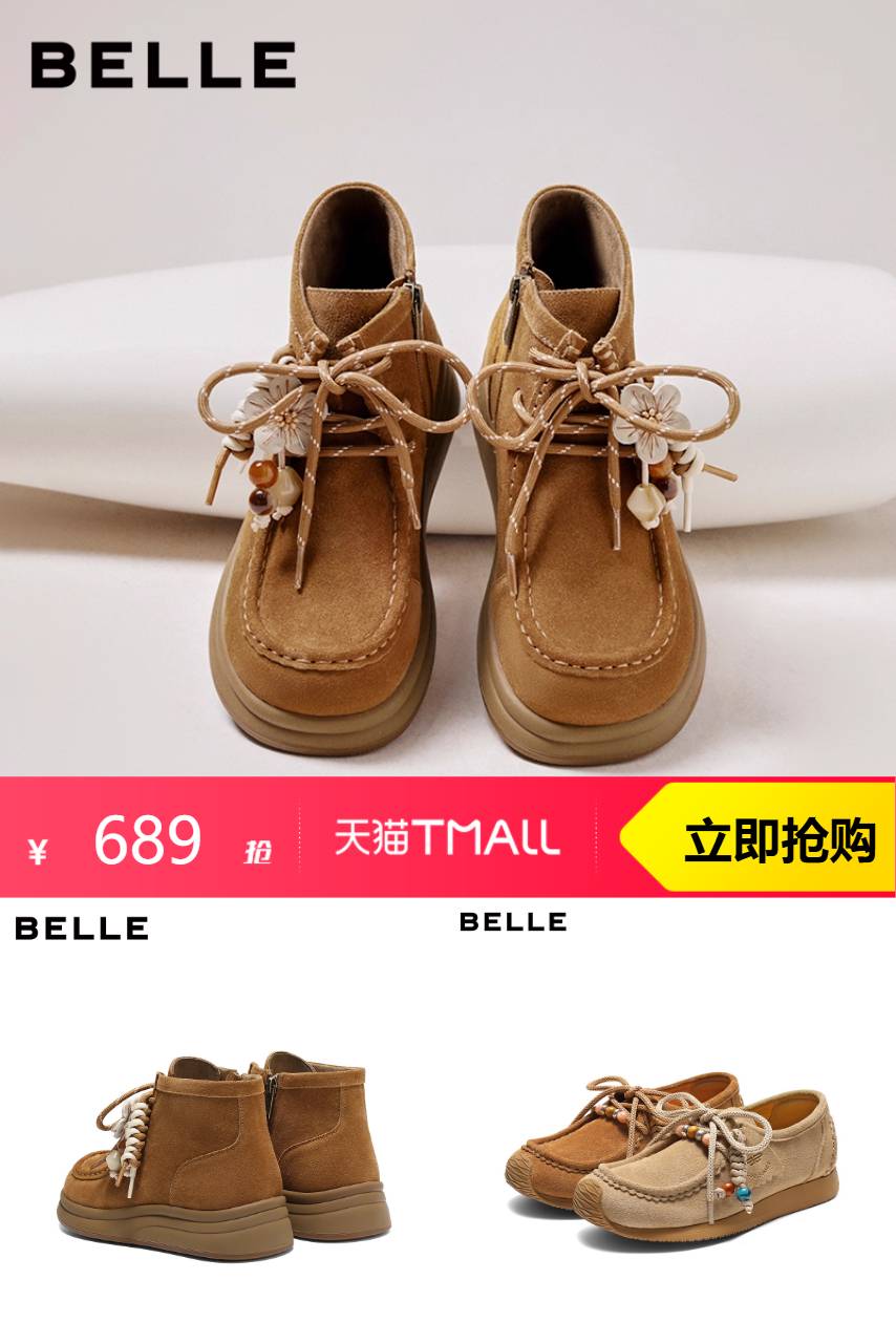 【领90券+天降券60+88vip+消费券到手+礼金红包26.95到手只要433.9】百丽美拉德马丁靴子女鞋新款袋鼠鞋高帮,可繁可简 随意切换风格~