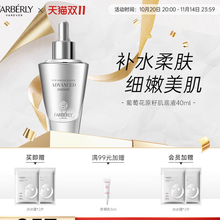 【优惠前350元-官方立减53元-优惠券满340-88元=209元,其中可叠加淘金币1.53元到手价207.47元】Farberly/法伯丽肌底液40ml,超赞!
