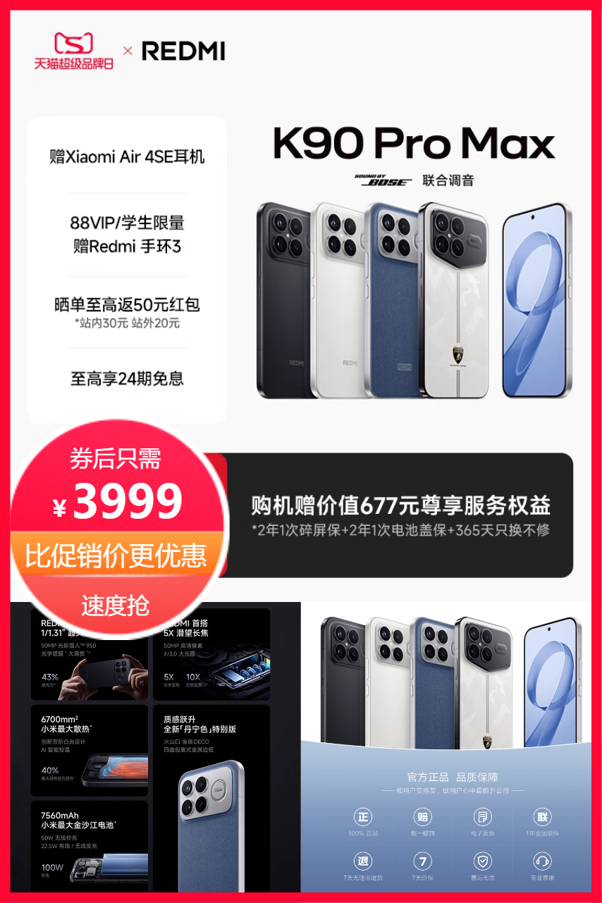 REDMIK90PROMAX红米手机抢购!到手3999惊艳登场!高性能电竞级体验,拍照更出色 官方旗舰品质保证,学子优选神器!