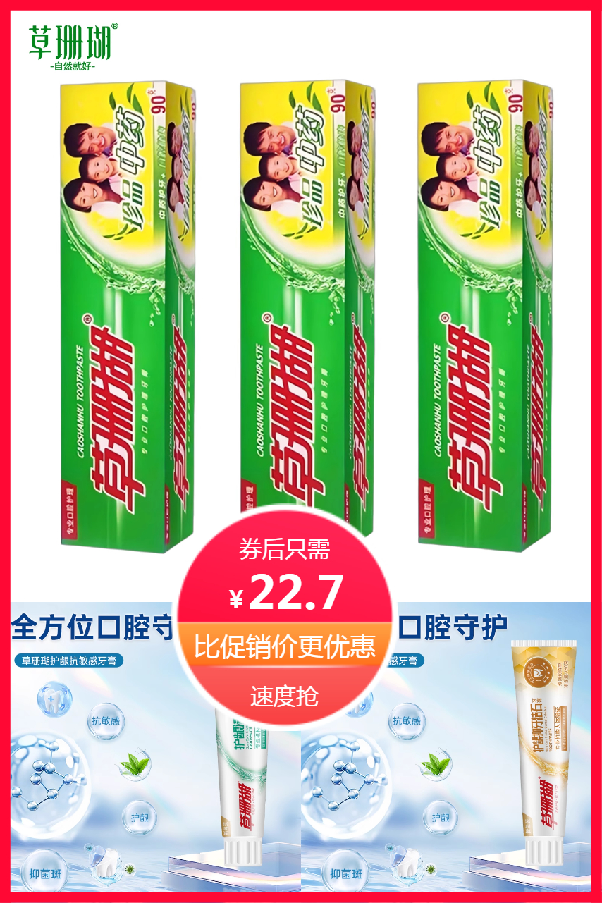 【草珊瑚草本牙膏国民大牌】【2支清凉+2支清火券后仅22.7到手4支!!】强化口腔清火清新健齿养护,严苛选材优中选优每1cm牙膏就含有一滴草珊瑚,抑制牙菌斑清火呵护牙龈健康.