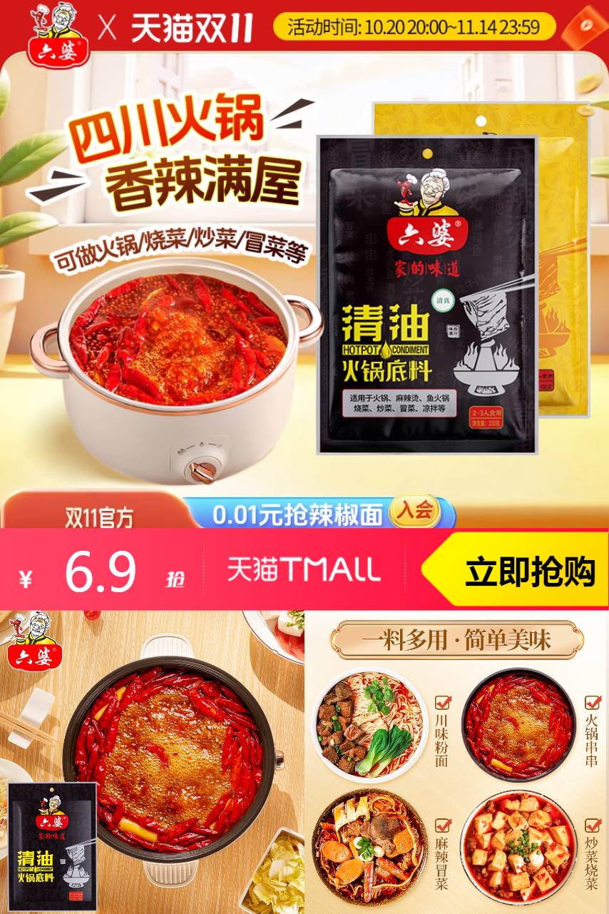 【叠加红包减1.03,到手价5.87】四川麻辣味,微辣不呛喉,炒菜串串烫锅底都拿手。