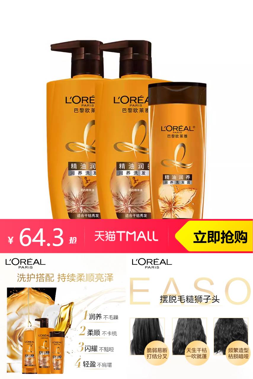 【【1】官方立减11.7,美妆惊喜券满1000减140,9折消费券,到手48.05; 【2】先抢1分钱赠新品护发素40ml; 】蕴含8种植物精油,纯净润养,秀发润泽,柔亮轻盈无负担,告别干枯毛躁黯哑脆弱,宛如秀发新生,女人的致命武器,您值得拥有!