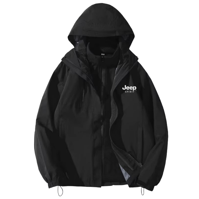 吉普2025新款户外三合一冲锋上衣女防风防水冬季加绒加厚男士外套