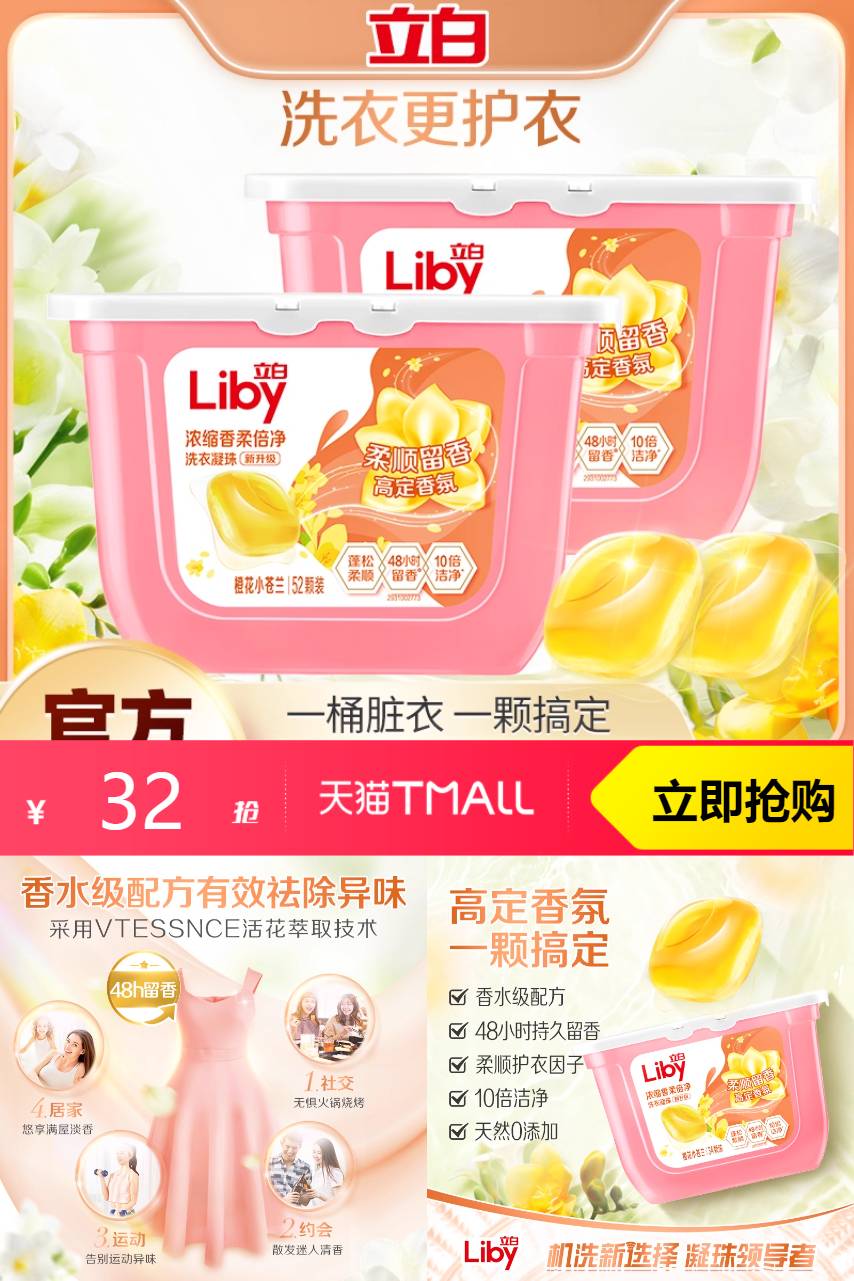 【叠加消费券后26.5,平均到手0.25/颗;到28%】立白小苍兰凝珠香水级配方,有效祛除异味,高定小苍兰随衣而行,除菌除螨!