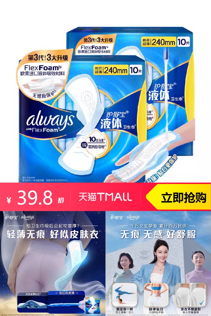 【立减30元,到手39.8元!】轻盈贴身,护舒宝液体卫生巾240mm日用款,官方正品保障,清爽不黏腻,经期自在每一天~创新液态锁水层,瞬吸防漏,轻薄透气,敏感肌也能安心用~