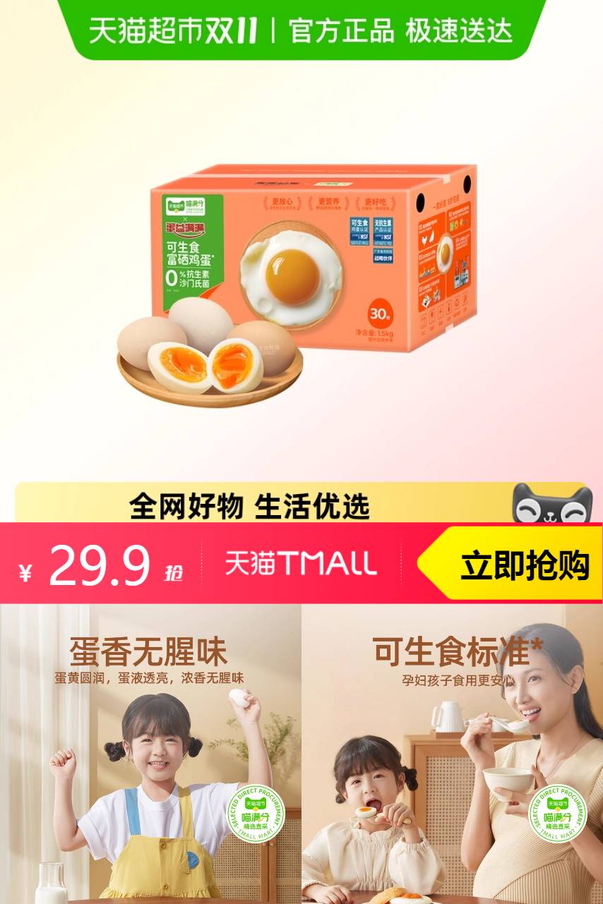 【原价59.9,官方立减30,88vip减1.5,淘金币抵扣2.19,叠加9折消费券到手23.59,叠加价到礼金减1.19,到手仅需22.4】富硒配方,能有效补充人体所需的硒元素,帮助提高免疫力。与市面上普通鸡蛋相比,其更加注重食材的品质与营养价值。每一颗喵满分的鸡蛋,都是您身体健康的加分项~