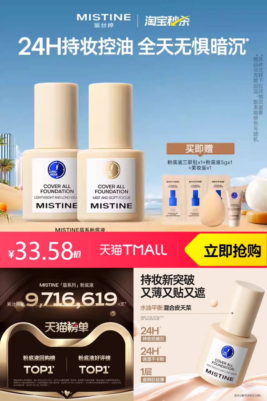 【无买即赠粉底液三联包+粉底液5g+美妆蛋,叠88vip9折消费券,88vip到手28.7】持妆时间长且触感轻薄,毫无负担感。