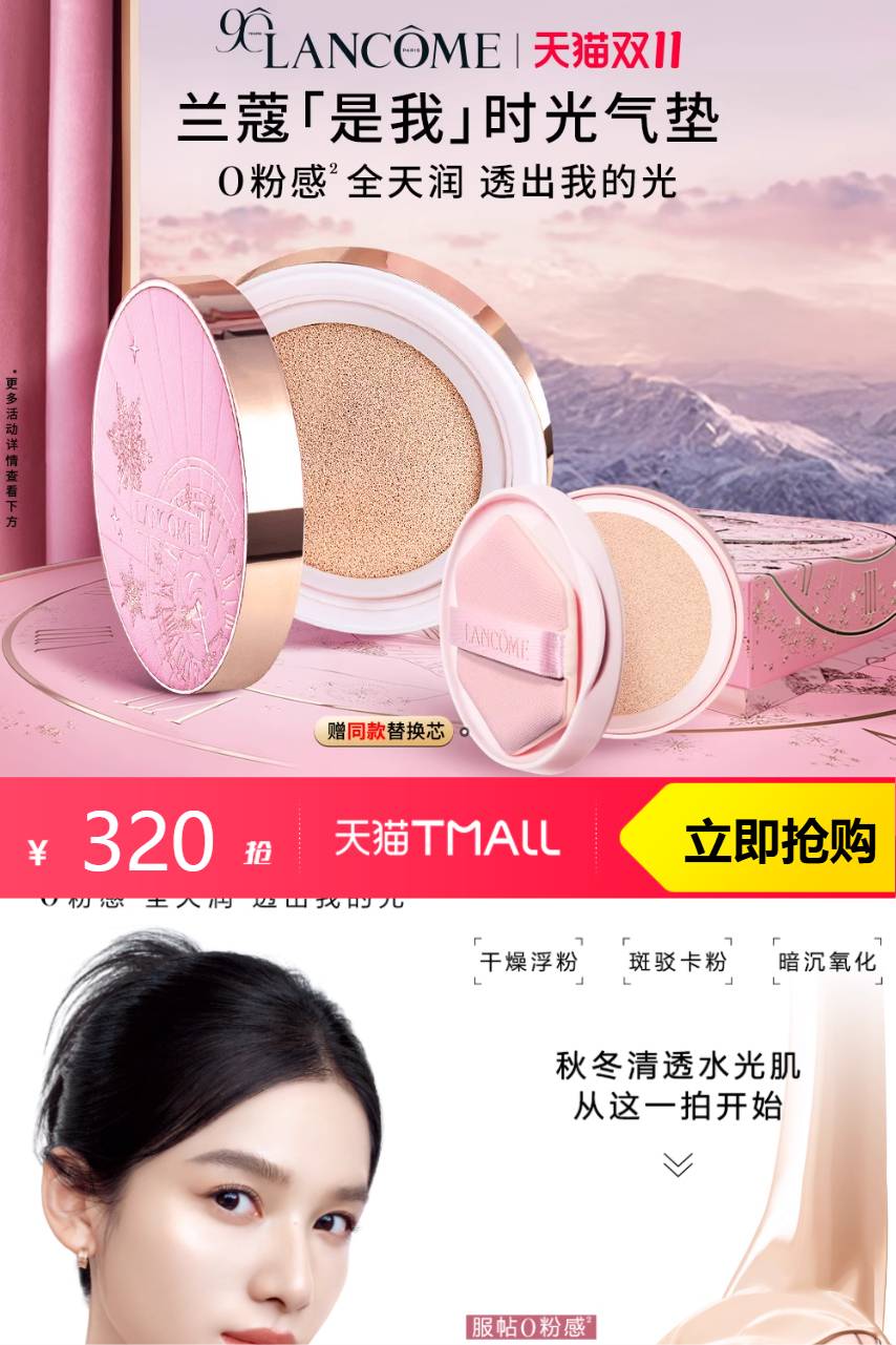 【【1】凑满1000减140,9折消费券,到手247.68;【2】买就赠同款替换芯】兰蔻是我气垫限定粉底液,时光限定 透出我的光~