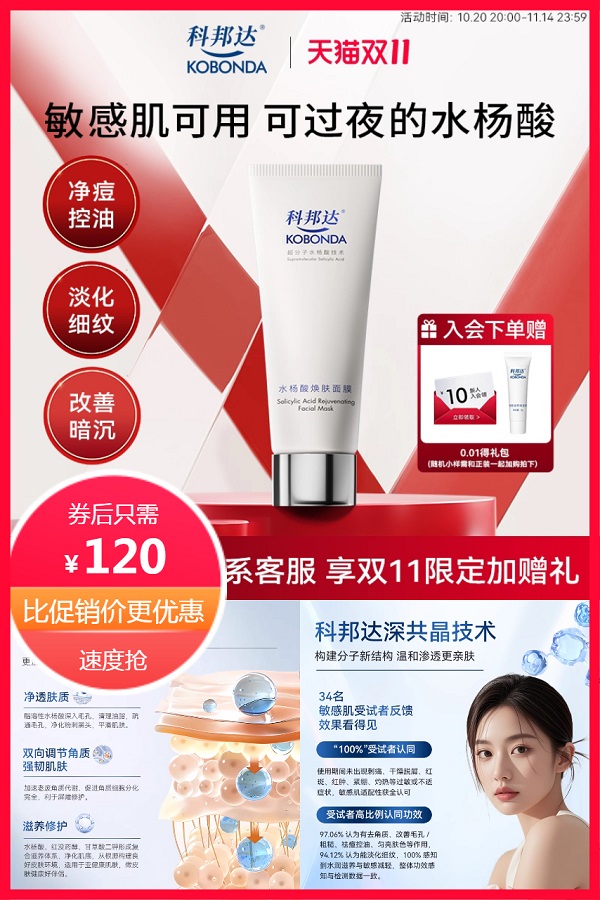 【叠加淘金币到手更优惠!】科邦达水杨酸面膜35g,温和焕肤祛痘,控油保湿+去角质一步到位,敏感肌也安心用~深层疏通毛孔,告别黑头闭口,肌肤细腻又透亮!