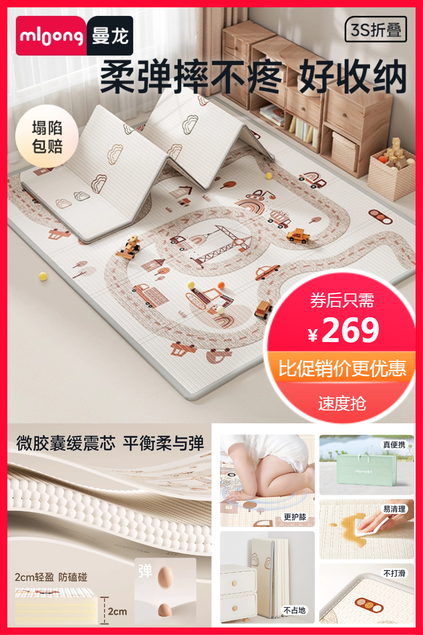 【官方立减55元+9折消费券+惊喜直降券+玩具天降购物券+首单礼金到手约186元】折叠 + 无毒无味 + 抗菌低敏!安全可靠!适用于多场景!边缘处理放心使用!易清洗,省时省力!符合人体工学设计,更加耐用!!