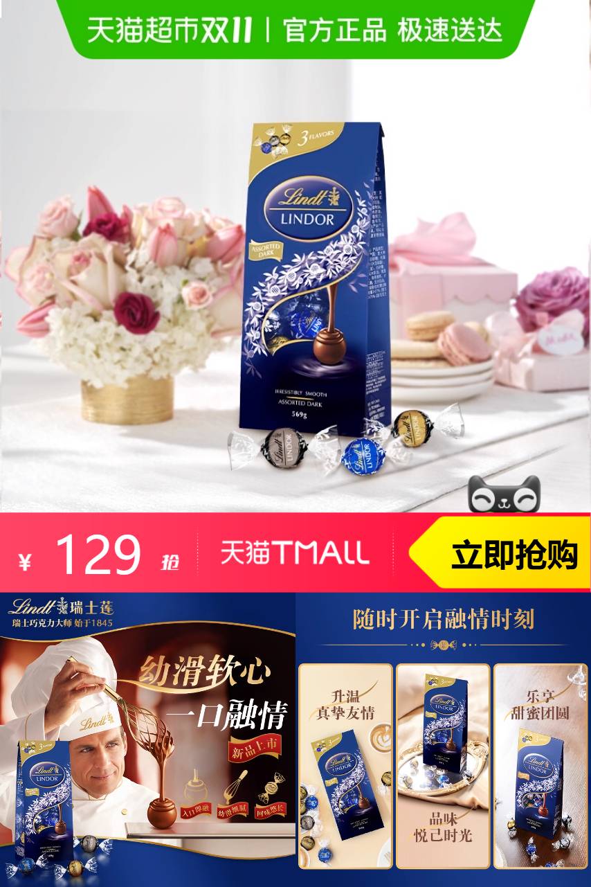 【88vip6.45,淘金币7.99,88VIP双11消费券11.46,猫超价到礼金5.16,到手97.94】瑞士莲软心黑巧克力纯可可脂喜糖569g,幼滑软心一口融情~