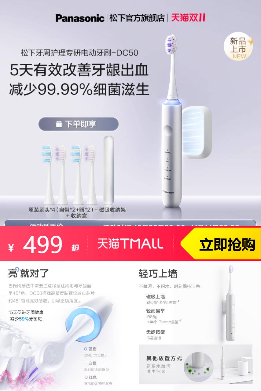 【官方立减115;淘金币减15+消费券9折+国补到手370】48年技术沉淀,推动电动牙刷~