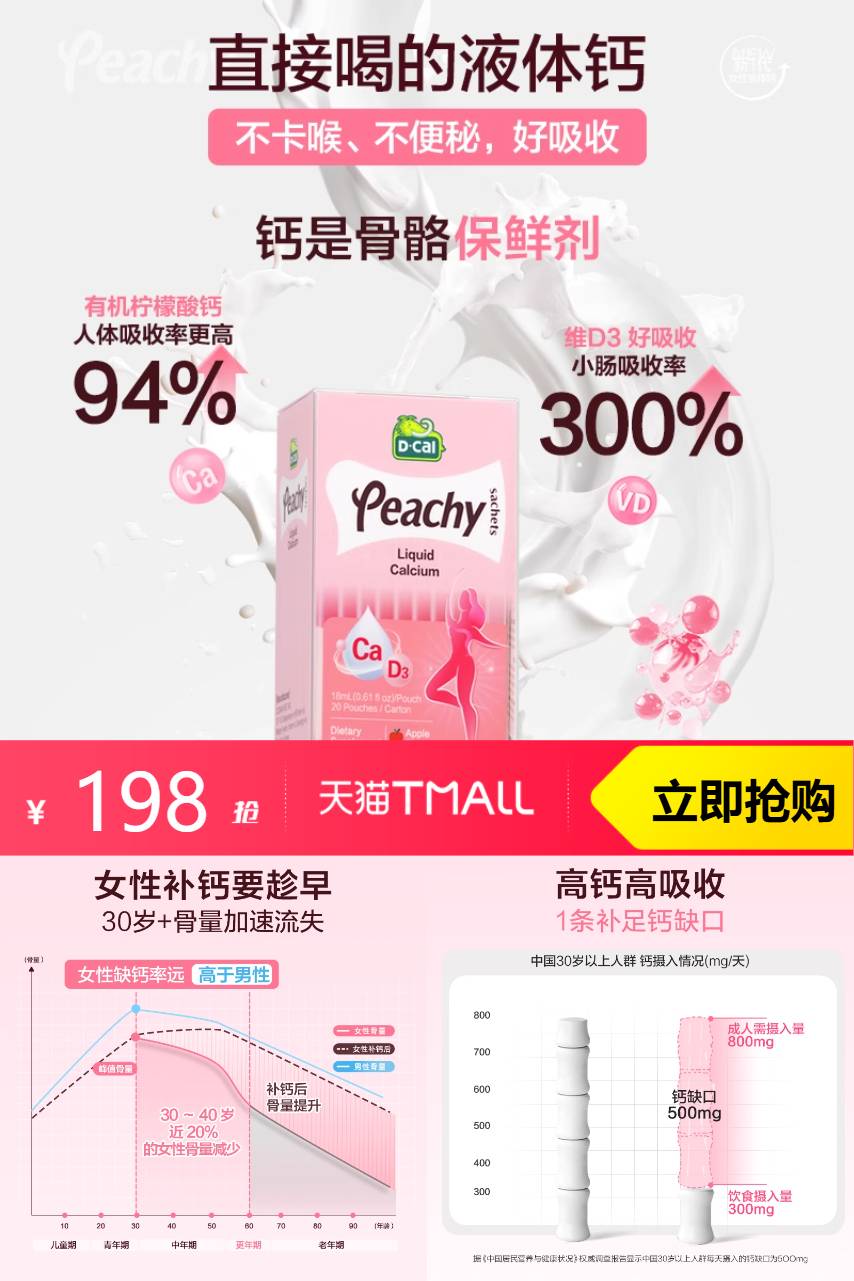 【叠加88消费劵到手159.9两条】dcal迪巧小粉条女性液体钙柠檬酸钙维生素成年人补钙口服液。钙力全开,迎接新生命! 孕期专享,液体钙吸收MAX 酸甜苹果味,每一口都是享受! 不便秘,好吸收,补钙无负担!