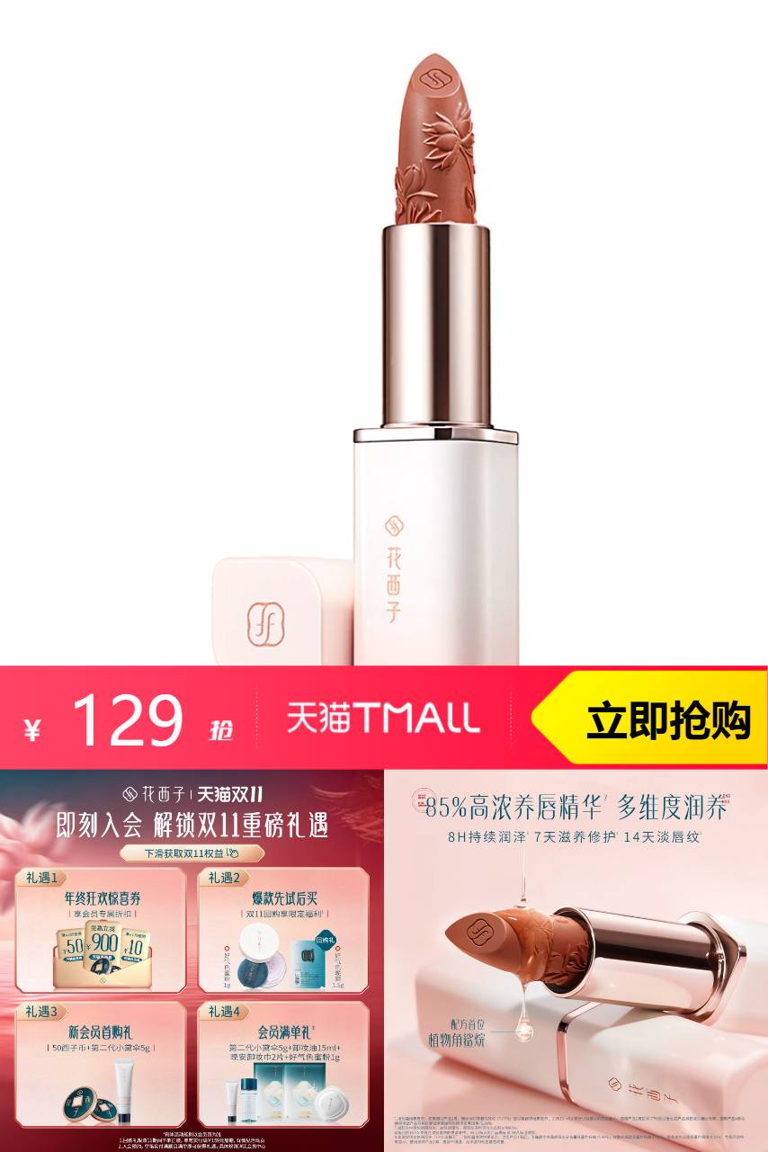 【单品直降23元,淘金币可减12.16元,限时红包11元,到手105.84元,消费券到手94.16元。叠加美妆惊喜券到手75.01元。入会购买有赠品(页面展示)】花西子哑光淡化唇纹唇釉雕花口红+入会礼赠,上唇显白又显气色,女神专属~