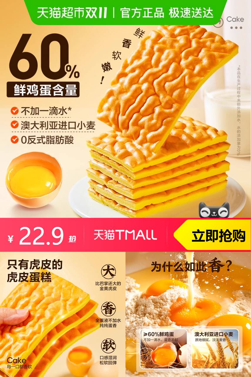 【淘金币可抵扣1.73,88VIP95折优惠1.15,超市新客立减2,到手18.02】外皮酥香,内里松软,良品铺子虎皮蛋糕选用优质原料精制而成,口感细腻,适合儿童、老人及上班族享用。经典虎皮风味,还原传统手工蛋糕的醇正味道,是日常居家、办公、出行的理想糕点选择。
