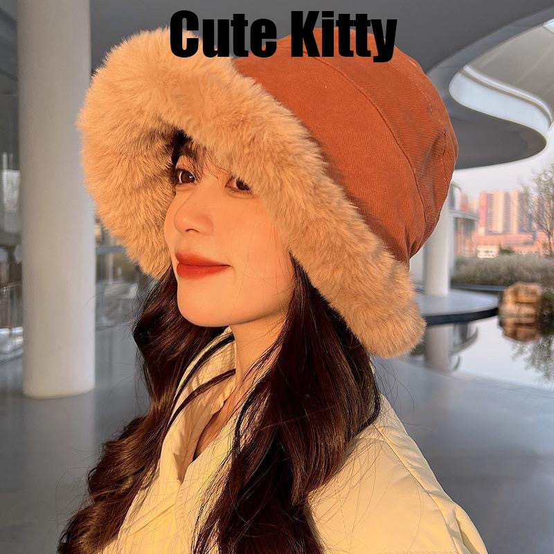 Cute Kitty毛绒帽子女秋冬时尚保暖百搭宽松甜美包头蒙古帽A