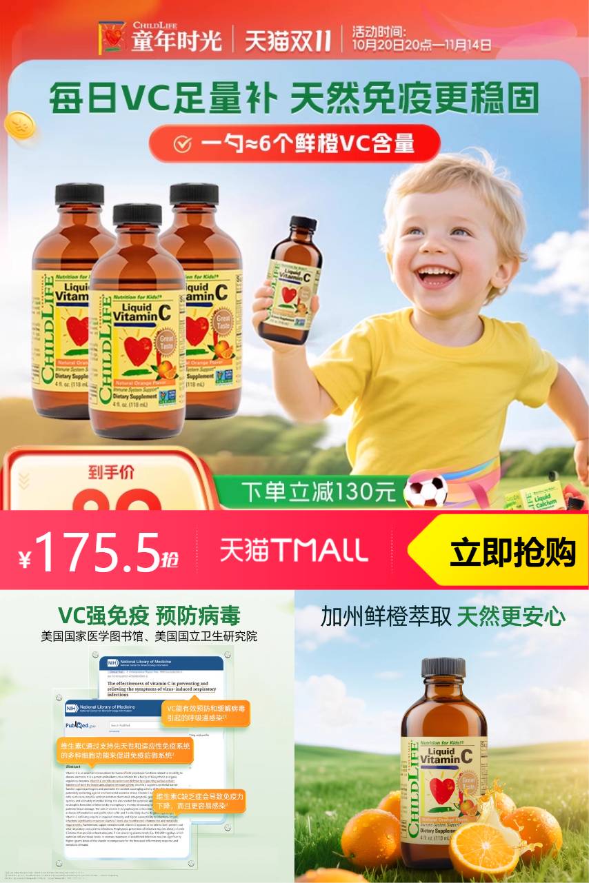 【88vip抵8.78+凑消费券到手150.06】童年时光婴幼儿补充维生素甜橙维CVC3瓶,国际适用的气体置换保鲜应用,高科技锁鲜技术滴滴新鲜 营养完整直达~
