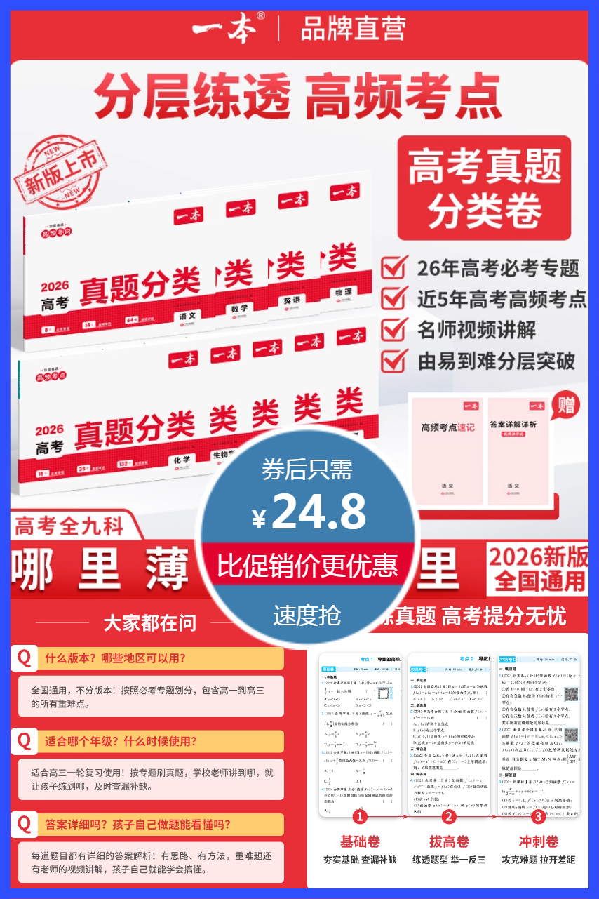 送高频考点速记+答案详解详析!26新版一本高考真题分类卷科目任选,26年高考必考专题,近5年高考高频考点,名师视频讲解,由易到难分层突破,视频精讲,攻克错题,高考提分无忧