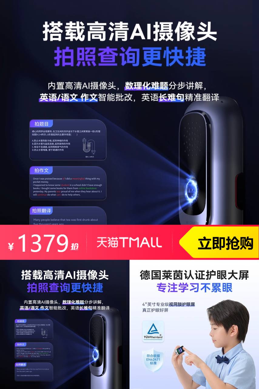 【叠加淘金币25元+消费券9折135.4元+国补182.79元=1035.81元】科大讯飞AI英语点读笔P30Pro月光银,孩子学习再也不用担心!!