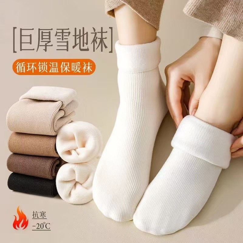 ⭕袜子女秋冬季长袜加绒保暖雪地袜中筒袜睡眠地板袜冬天长筒袜