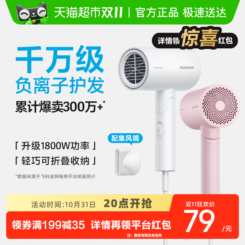 飞科吹风机大功率学生风筒1件装 59.8 【立减10元】 凑199-35