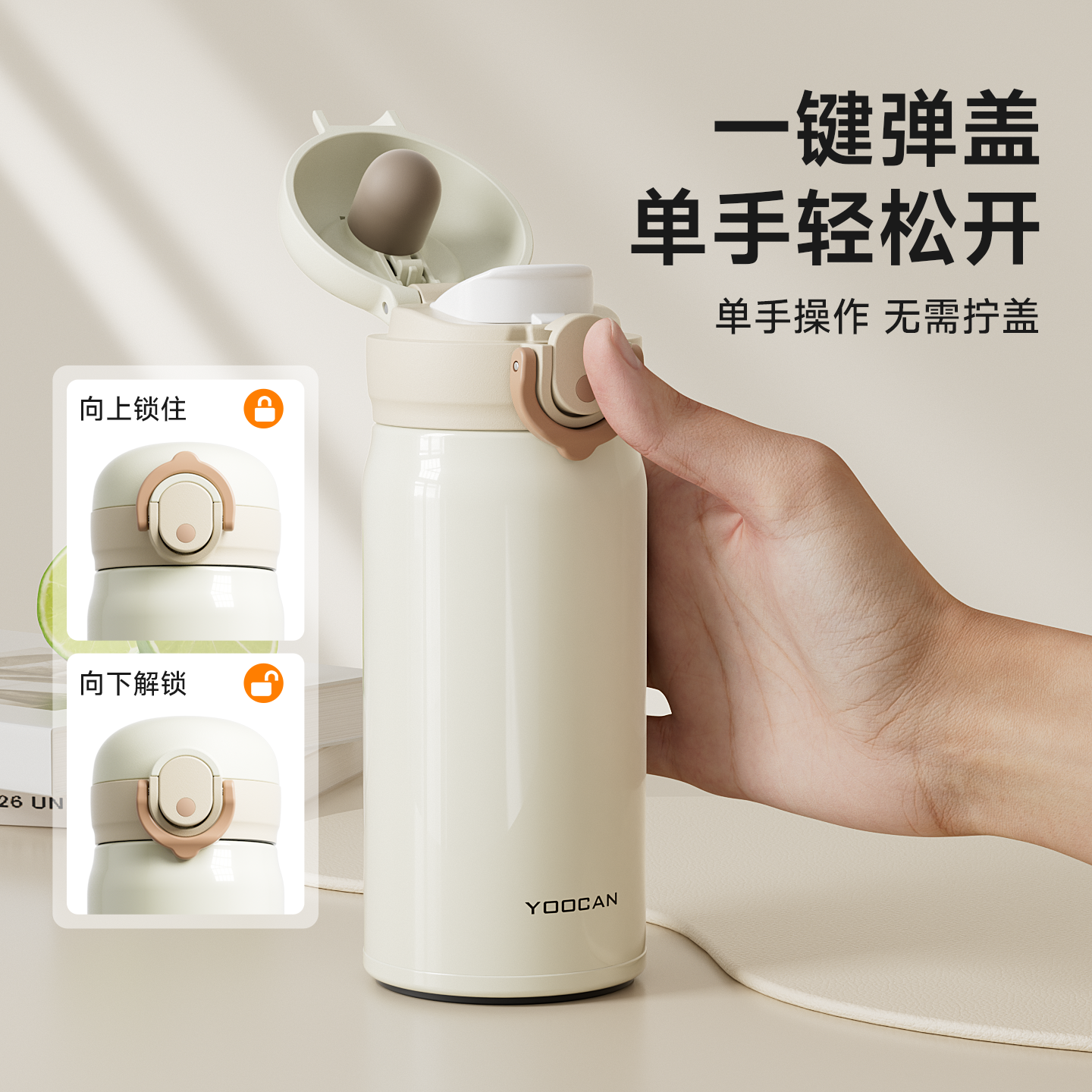 【原价218-立减33-优惠券26-立减优惠109-首单礼金4-淘金币1.5=到手价44.5】裕川保温杯经典不锈钢弹盖水杯简约便捷,超赞~