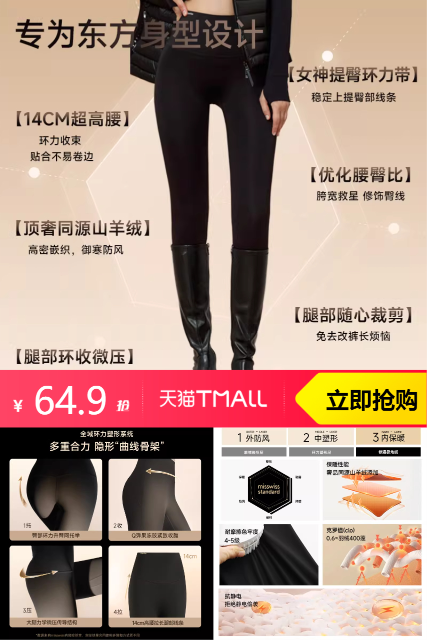 【有20%礼金抵扣12.98,官方立减40,商品券75元,淘金币抵扣5.99,叠消费券到手40.5 !左右多款多规格任选!】【羊绒鲨鱼裤】MissWiss秋冬女神款,羊绒保暖,舒适无束缚,时尚百搭,穿出你的风格!