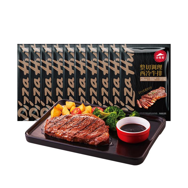 【超级立减131,满299减30,冬焕消费券减20,首单礼金减3.】必胜客必胜优选牛排西冷厚切,原肉整切黑椒牛排180g*10,牛排三大经典部位之西冷牛排,由上腰部的脊肉构成,肉的外延带一圈白色肉筋。