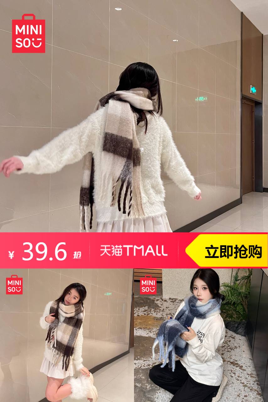 【59-立减9.4-券10=39.6元】MINISO名创优品围巾加厚保暖,柔软舒适,保暖锁温。