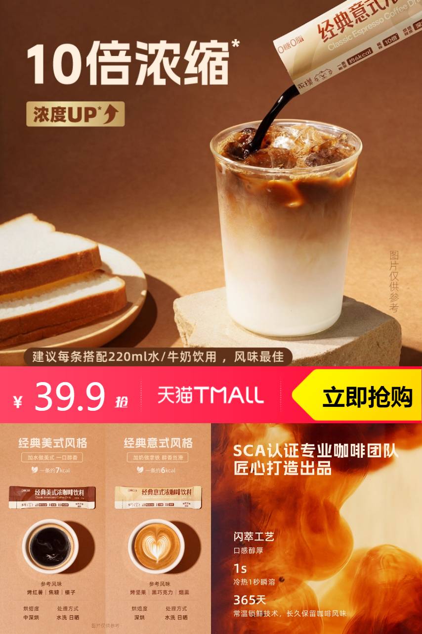 【原价103.9元-官方立减44元-20元券=39.9元,淘金币5.91元,可叠加88vip消费券,到手29.75元,拍两件加赠小房子玻璃杯】苦感干净带点微甜,0糖0脂喝着没负担,冰美式爱好者直接锁死!