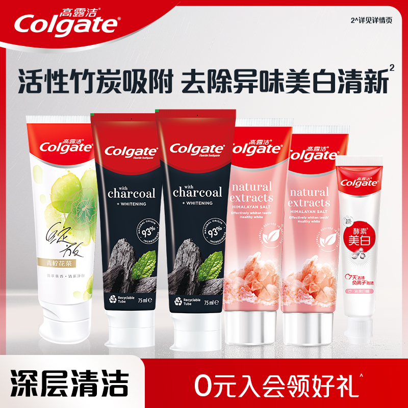 百补价格19.9淘金币抵扣3.02+消费卷【15.19到手!!】竹炭美白100g*2+喜马拉雅盐120g*2+国产酵素美白牙膏40g*1,再送双效炫白牙刷*1+茉莉绿茶漱口水12ml*2,开启口腔护理新篇章