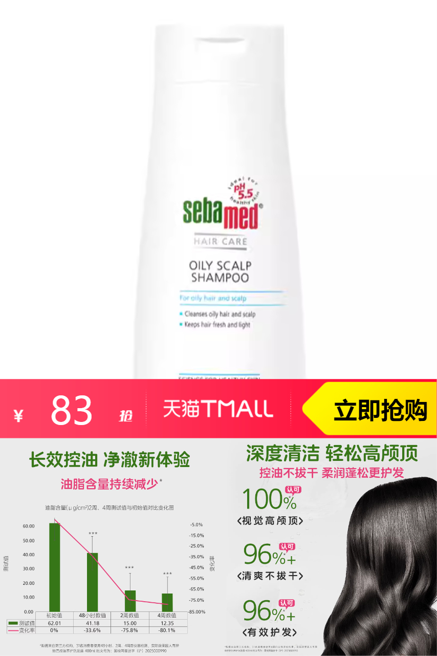 【88VIP专享9.5折+叠加淘金币5.1元+店铺限时红包3元+首单礼金3元=到手67.75元】施巴控油洗发露无硅油护发洗头水400ml,深度清洁 轻松高颅顶,控油不拔干, 柔润蓬松更护发~