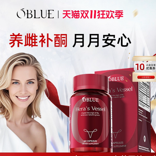 【淘金币6,88VIP冬焕新消费券200-20,到手198】OBLUE欧林兰红钻胶囊圣洁莓大豆异黄酮,超赞!