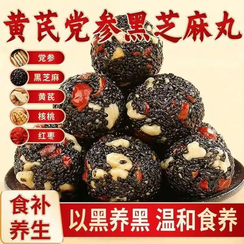 黄芪党参黑芝麻丸核桃红枣混合坚果养生丸食补以黑养黑