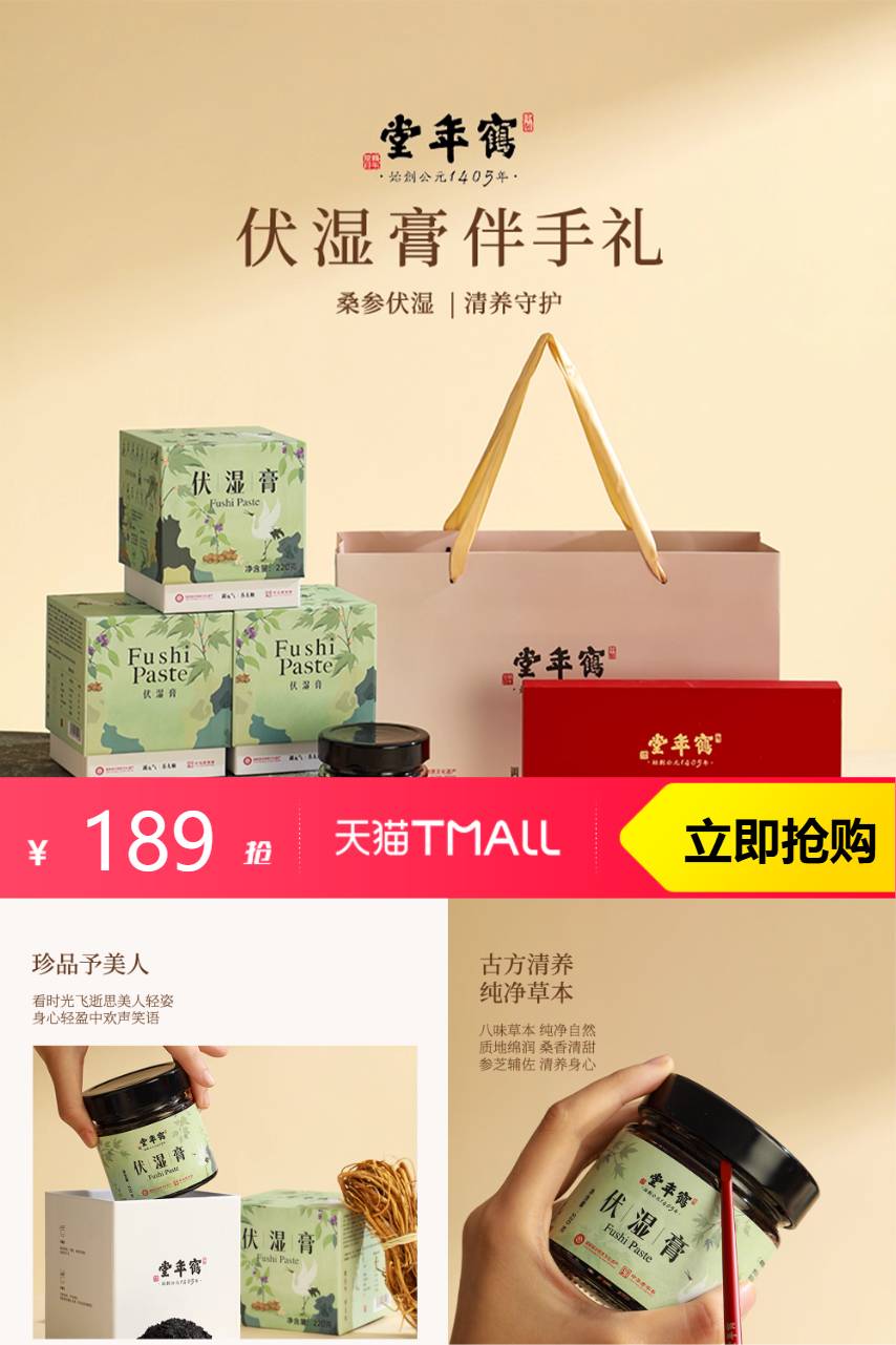 【拍220g*3 礼盒装,领券立减25元到手仅需189,淘金币抵扣4元到手185左右(抖音爆款)L史D】鹤年堂伏湿清养膏,古方清养纯净草本,真材实料从内调理!