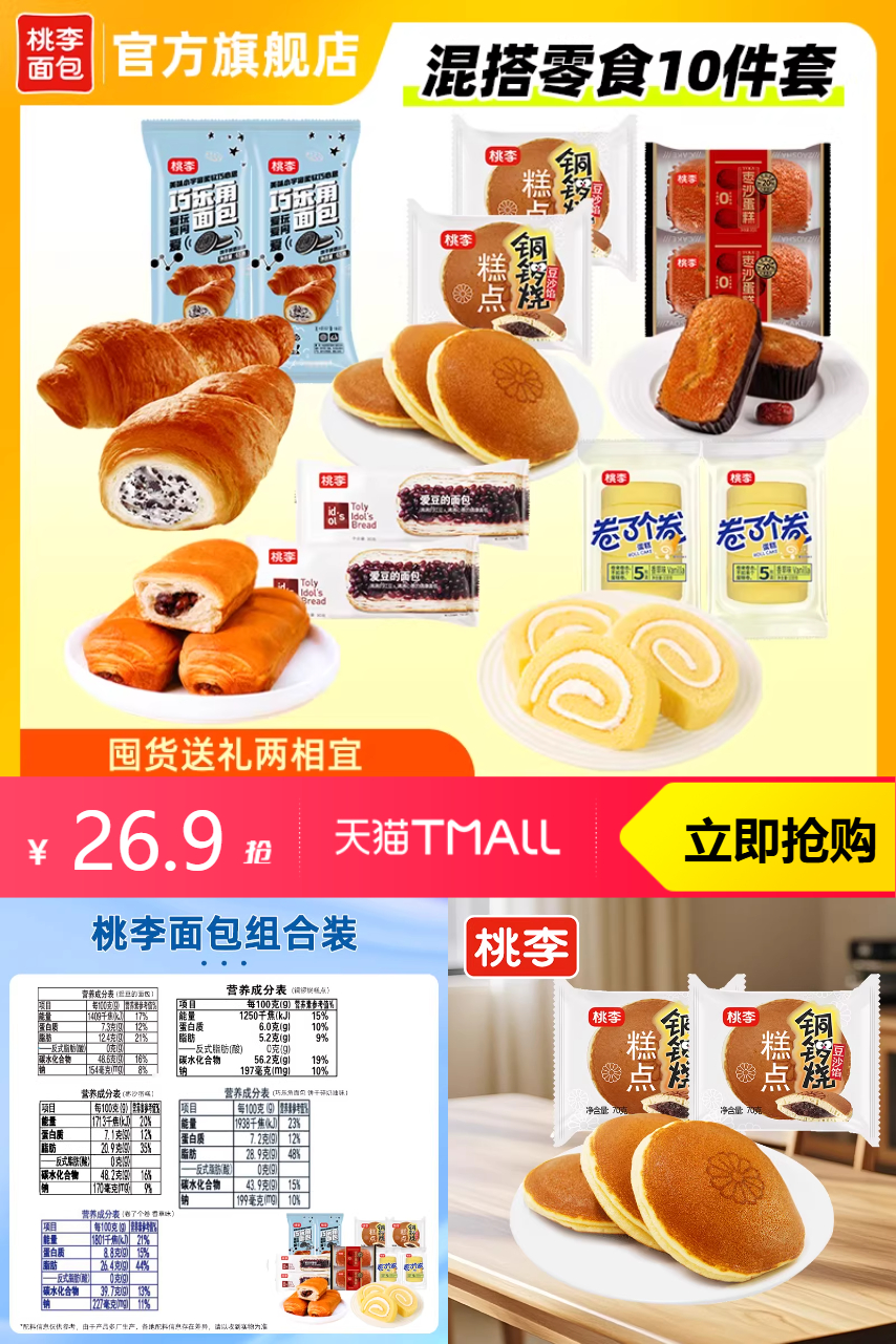 【88vip9.5折抵扣1.35元,淘金币抵扣1元,到手24.48】轻松享受美味早餐时光。桃李软面包口感松软,奶香浓郁,方便即食,适合家庭备餐、办公室加餐或户外休闲。独立小包装设计,干净便携,开袋即享。精选优质原料制作,带来温和滋养的味觉体验。