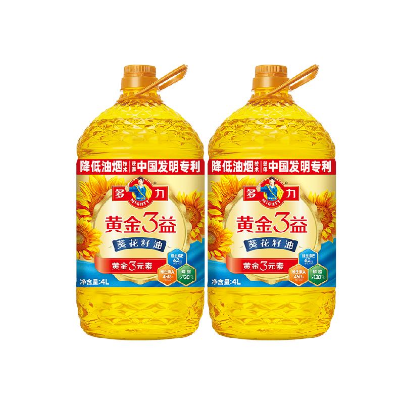 【淘金币抵扣1.99,新客红包2-88到手仅需114.52!!】李佳琦直播多力黄金3益葵花籽油4L*2桶,超赞!