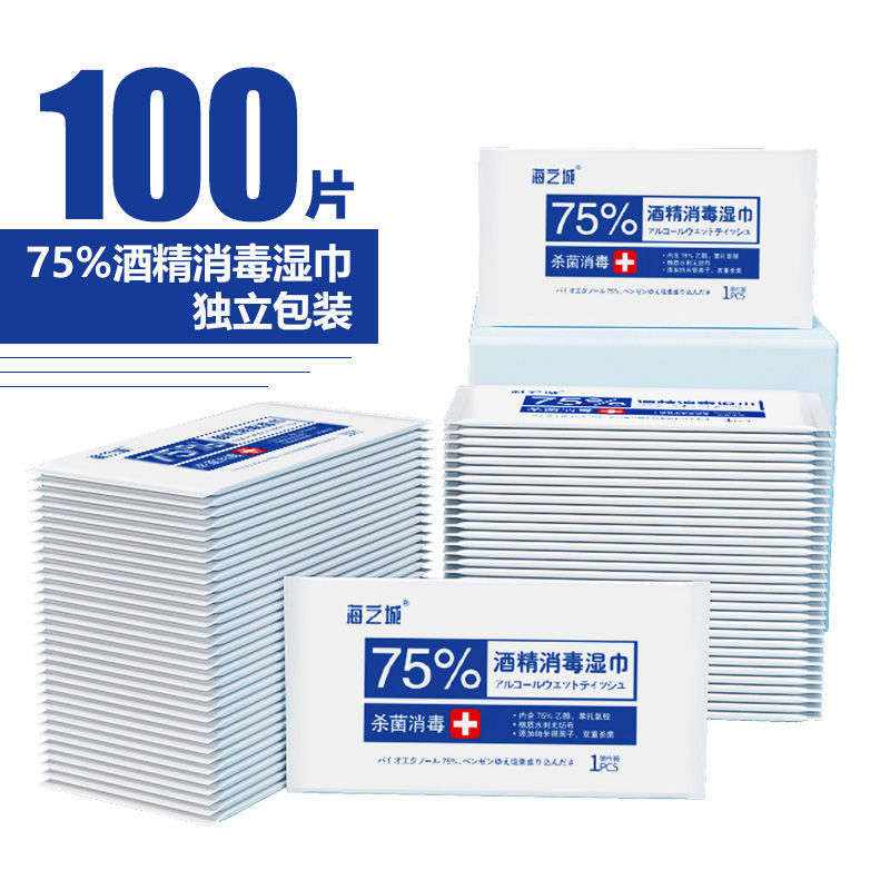 75%酒精消毒湿巾独立便携装一次性酒精湿纸巾免洗杀菌100片