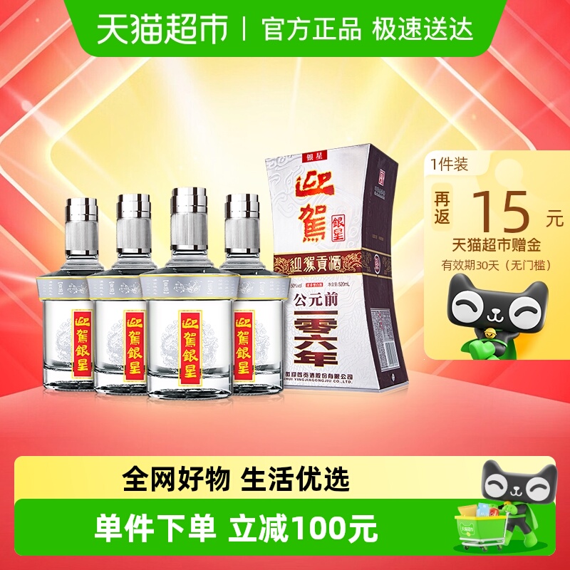 迎驾贡酒 银星浓香型白酒50度520ml*4瓶 整箱装 自饮自酌聚会宴请