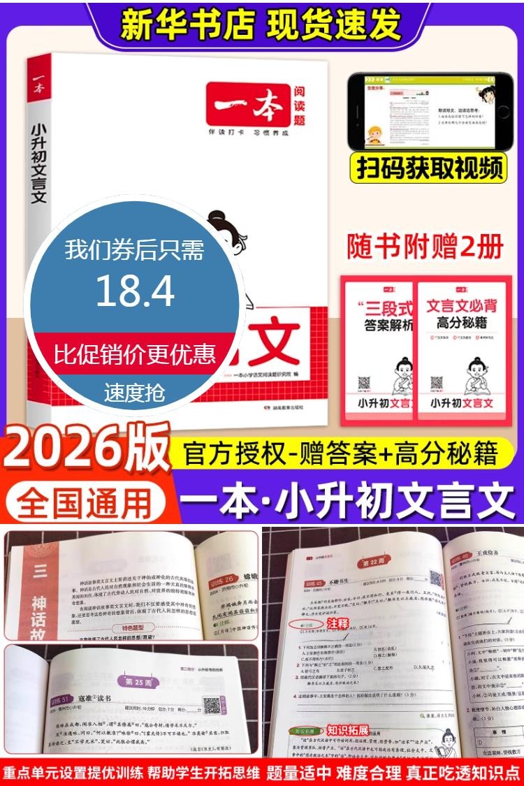 【赠答案解析+高分秘籍】2026版一本小升初文言文真题专项训练,重点单元设置提优训练,帮助学生开拓思维,题量适中,难度合理,真正吃透知识点,讲练结合,巩固新知,滚动训练,练毕业考真题,轻松备战小升初!