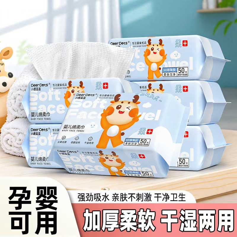 DeerDots洗脸巾一次性加厚棉柔巾洁面巾婴儿擦脸巾悬挂擦脸绵柔巾