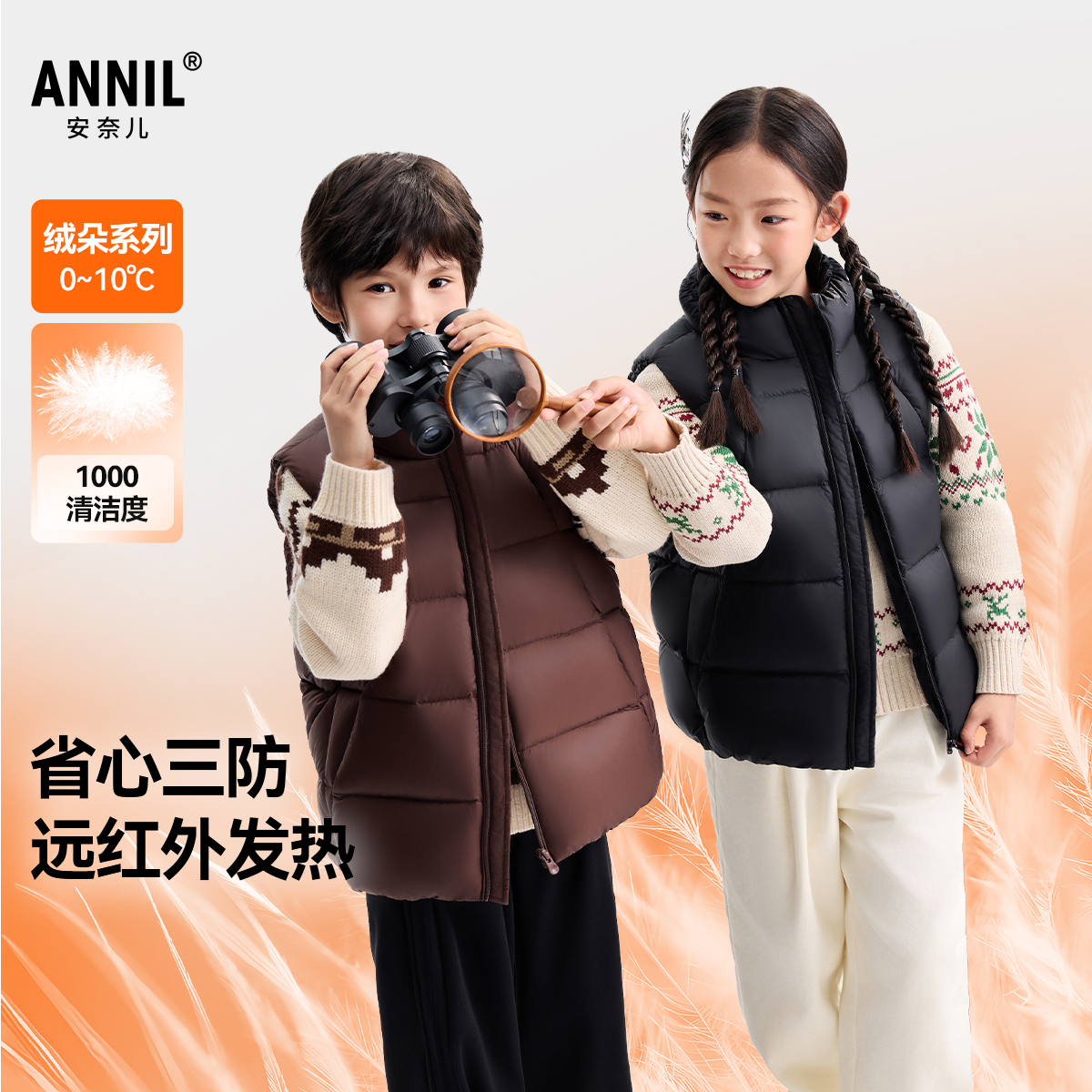 安奈儿童装男女童立领羽绒马甲2025冬三防羽绒服内搭校服神器发热