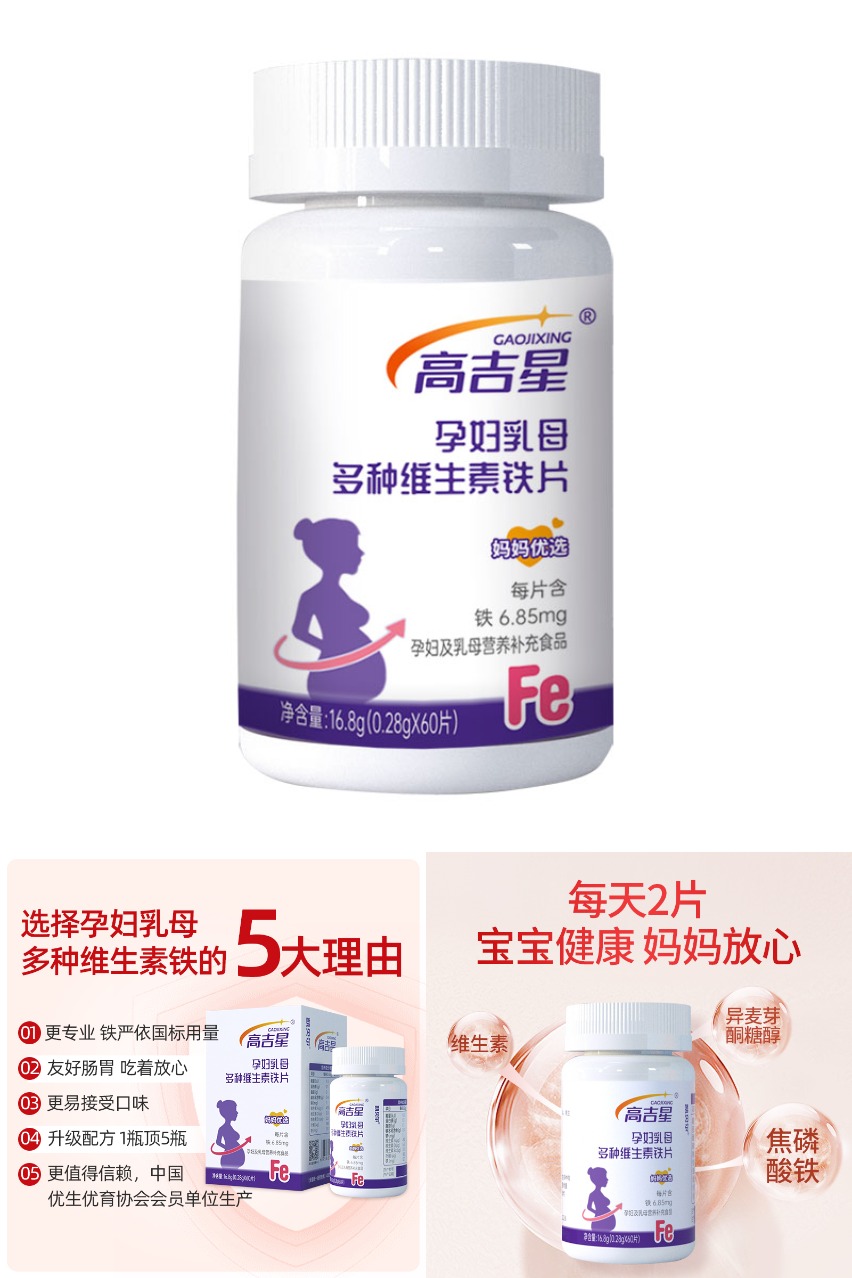 高吉星孕妇补铁剂,叶酸维生素d!天然植物成分,安全健康,富含多种维生素和矿物质,出行易携带,易保存,不受潮,贴心呵护宝宝降临,让孩子赢在起跑线。
