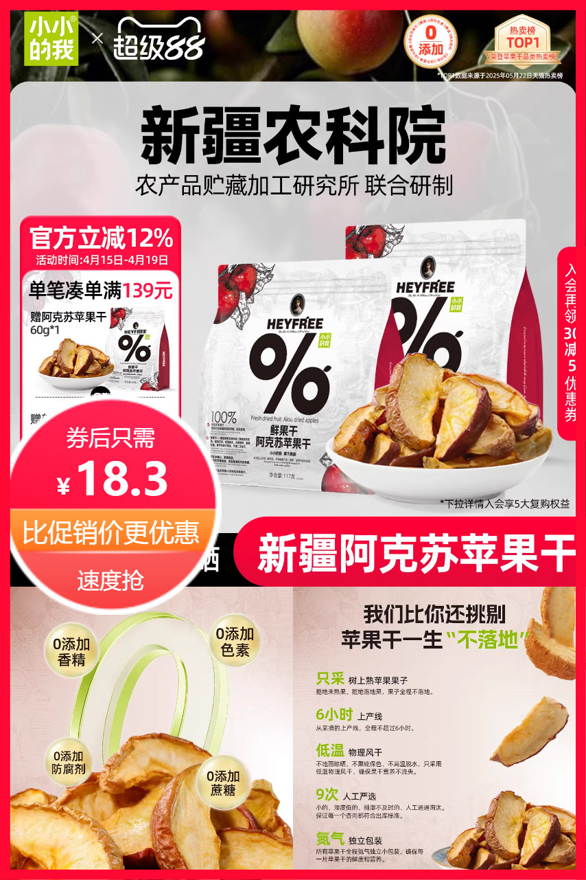 【淘金币到手更优惠】新疆直供, 阿克苏精选!薄片厚嚼,汁多维C满满!泡水即享,美味不打烊~满口果香,解渴又健康!无论是办公室小饿星人还是家中追剧族,都是完美搭档!