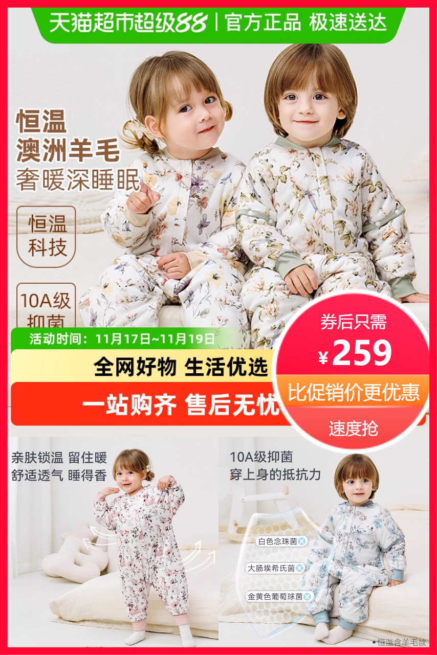 【88VIP到手246.05】ibaby恒温睡袋,防踢设计,夹棉材质!!温柔包裹感,宝宝安睡整晚!透气不闷热,四季通用!!关键适合成长期变化中的宝贝尺码!!