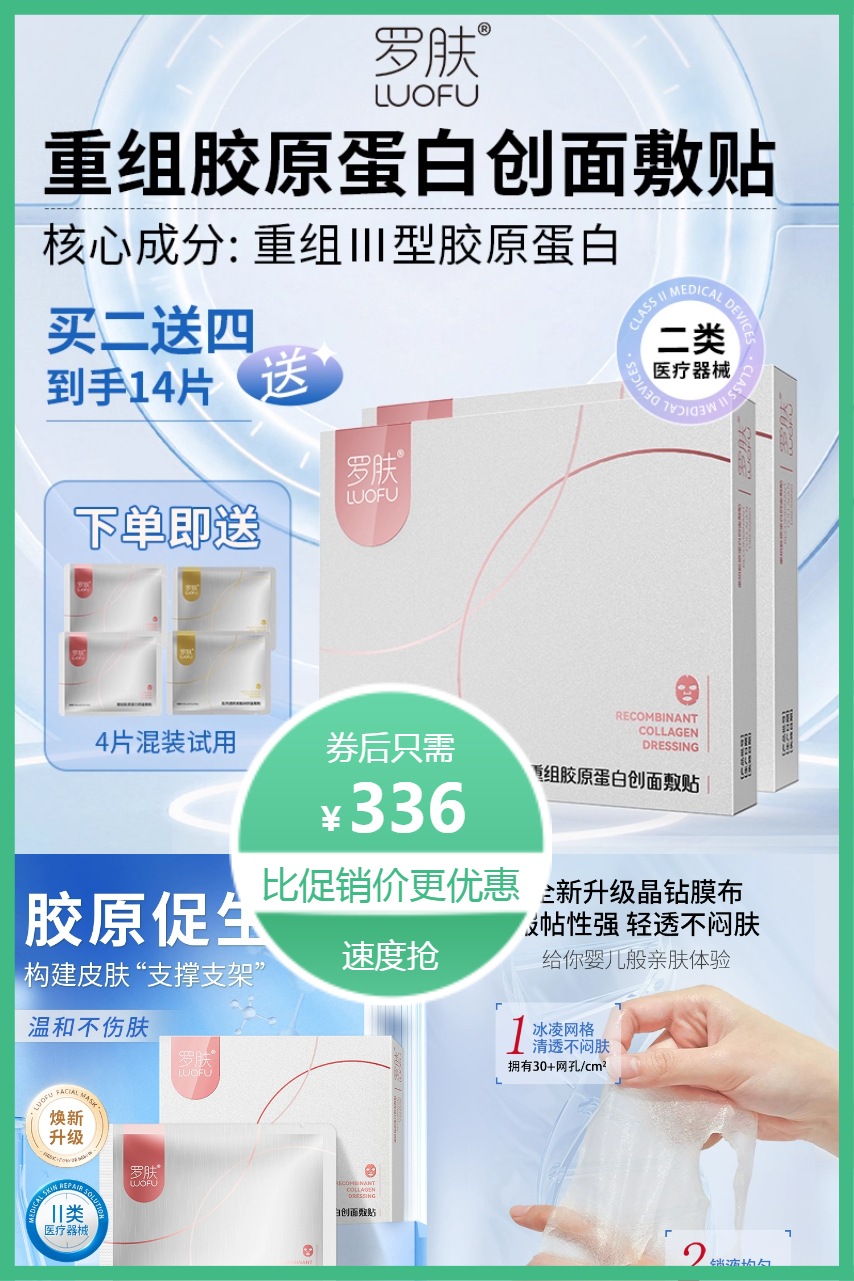 淘金币抵扣11.88元预估到手324.12元。无菌屏障设计,重组胶原蛋白直达肌底!无添加配方温和不刺激,医美术后、晒伤泛红、屏障受损都能用,贴肤透气易吸收,帮肌肤快速回归健康状态~